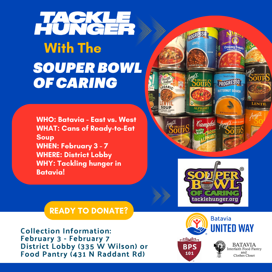 Help us collect ready-to-eat soup to provide the Batavia residents in need with nourishment throughout the winter!